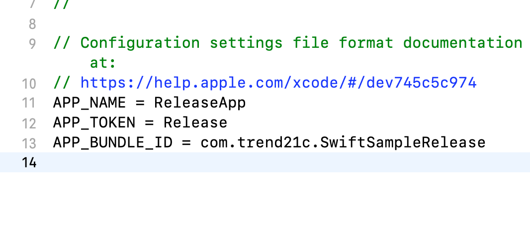 저는 아까 예제로 APP_NAME, APP_BUNDLE_ID, APP_TOKEN 이라는 변수를 선언했는데요