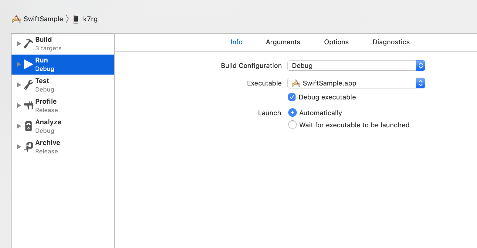 xcode는 기본적으로 Run 모드에서는 Debug build configuration을 사용하고