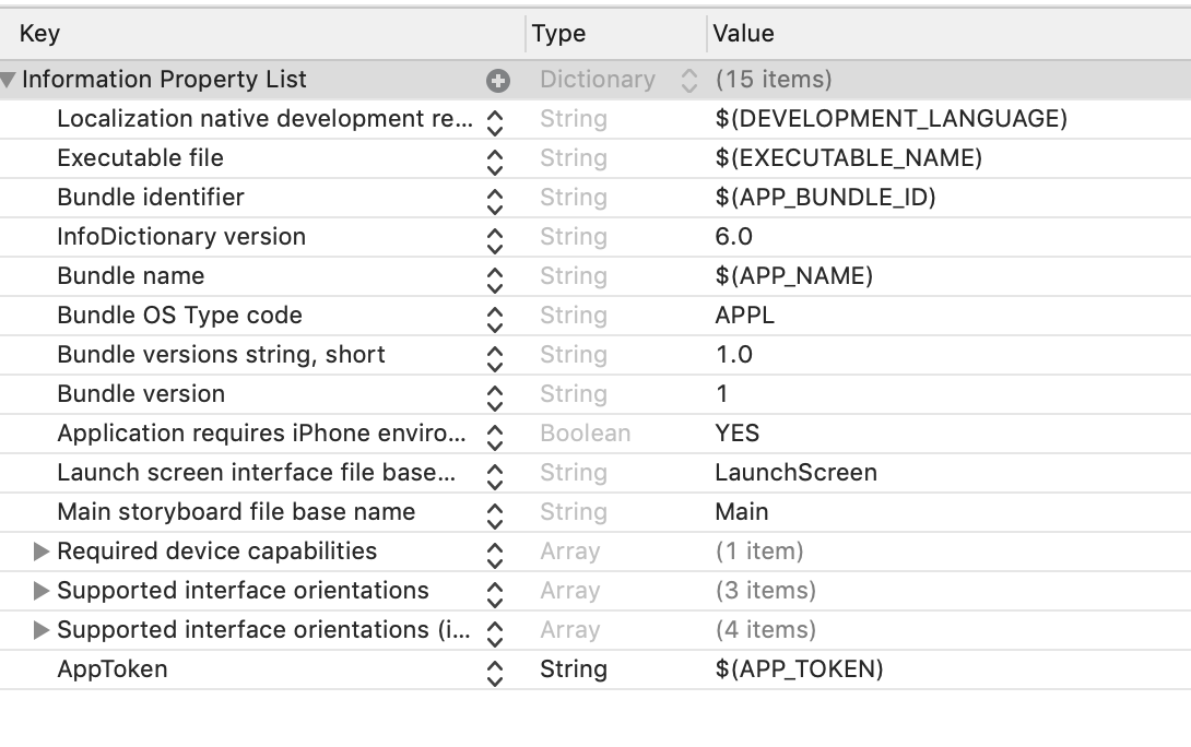 print(Bundle.main.infoDictionary?["AppToken"] as? String)