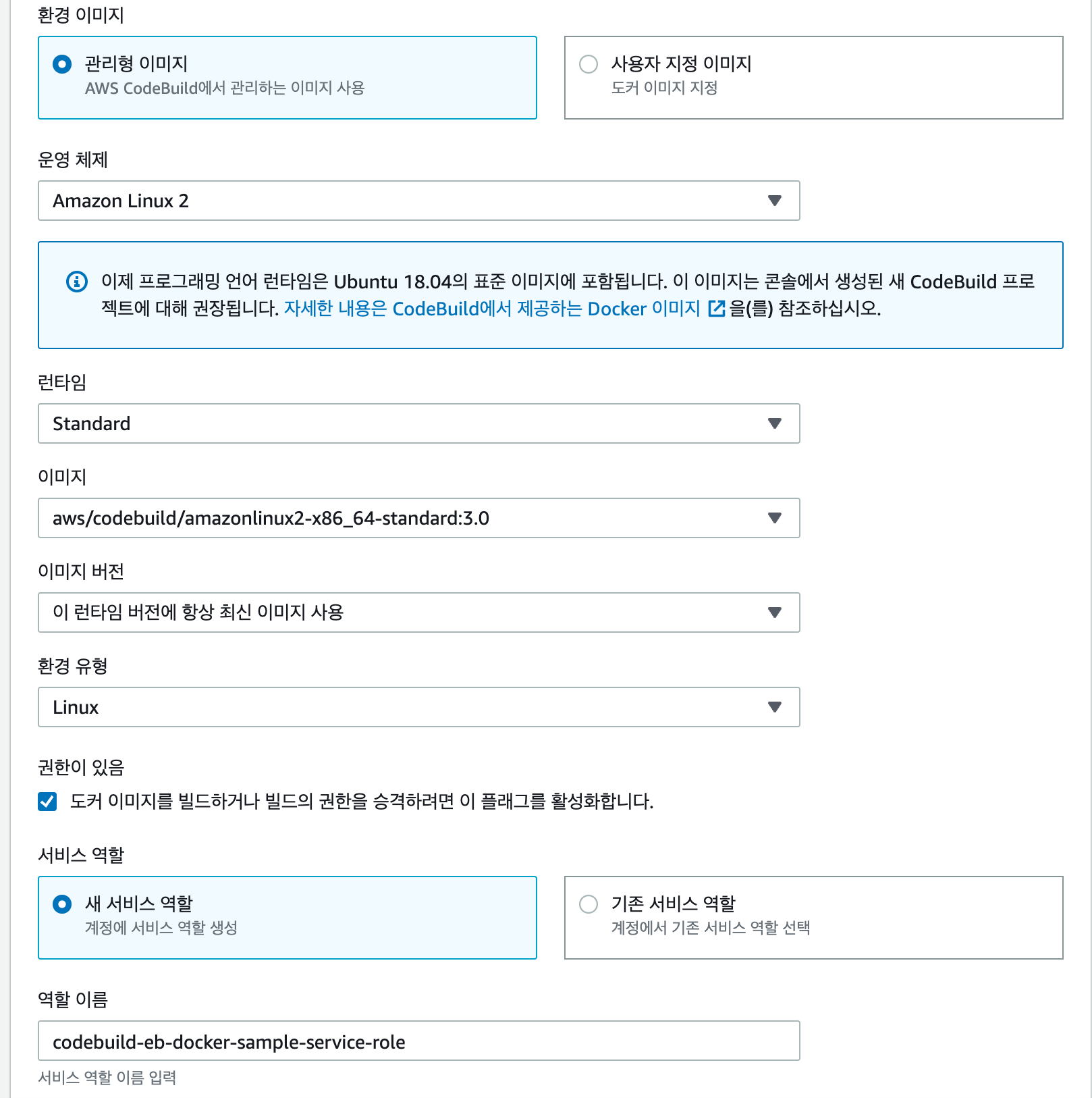 여기까지 단계에서는 아직 프로젝트내에 buildspec.yml 파일을 설정하지 않았고,