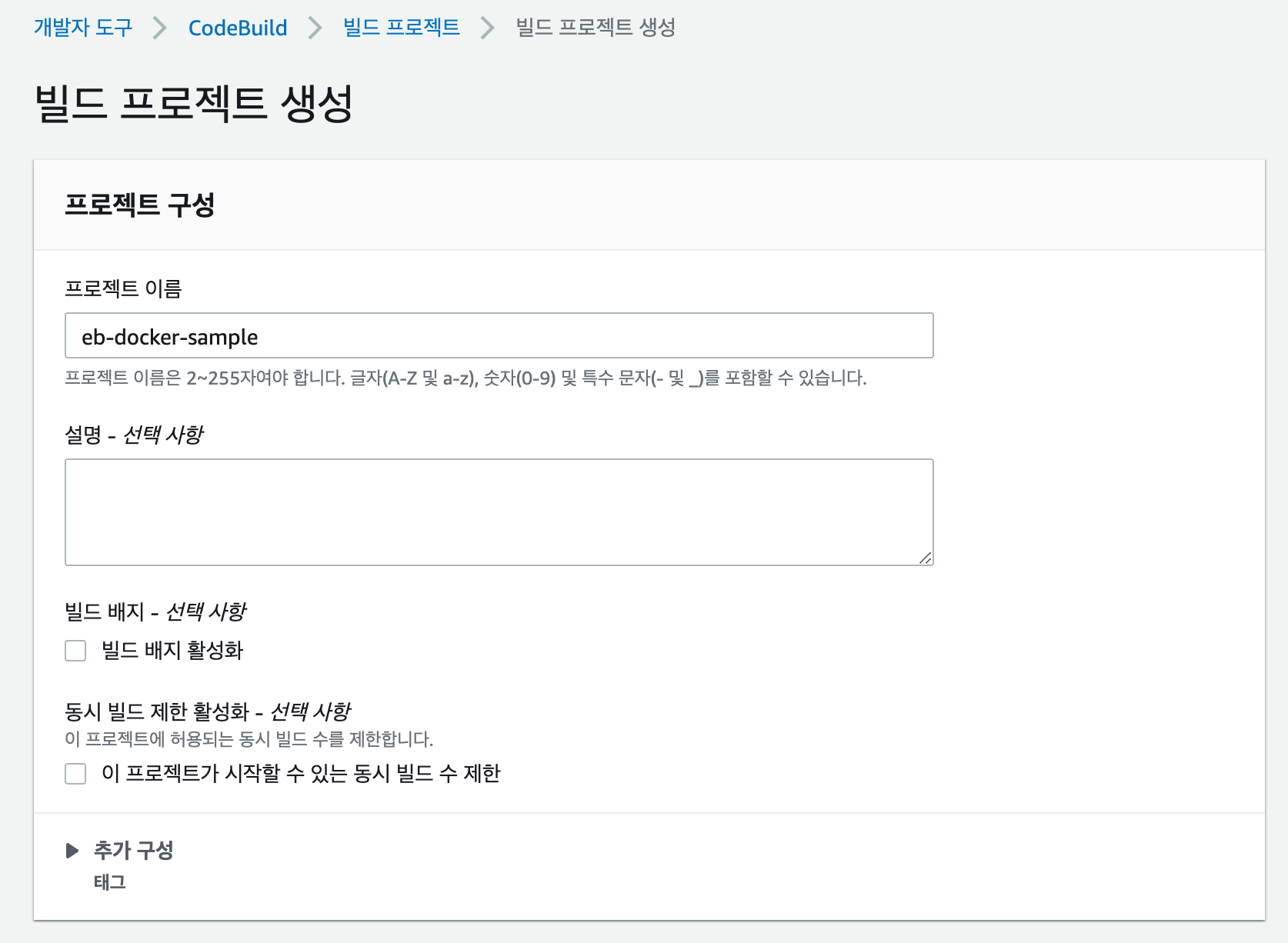 빌드 프로젝트를 생성하면 codebuild의 세팅은 완성이 됩니다