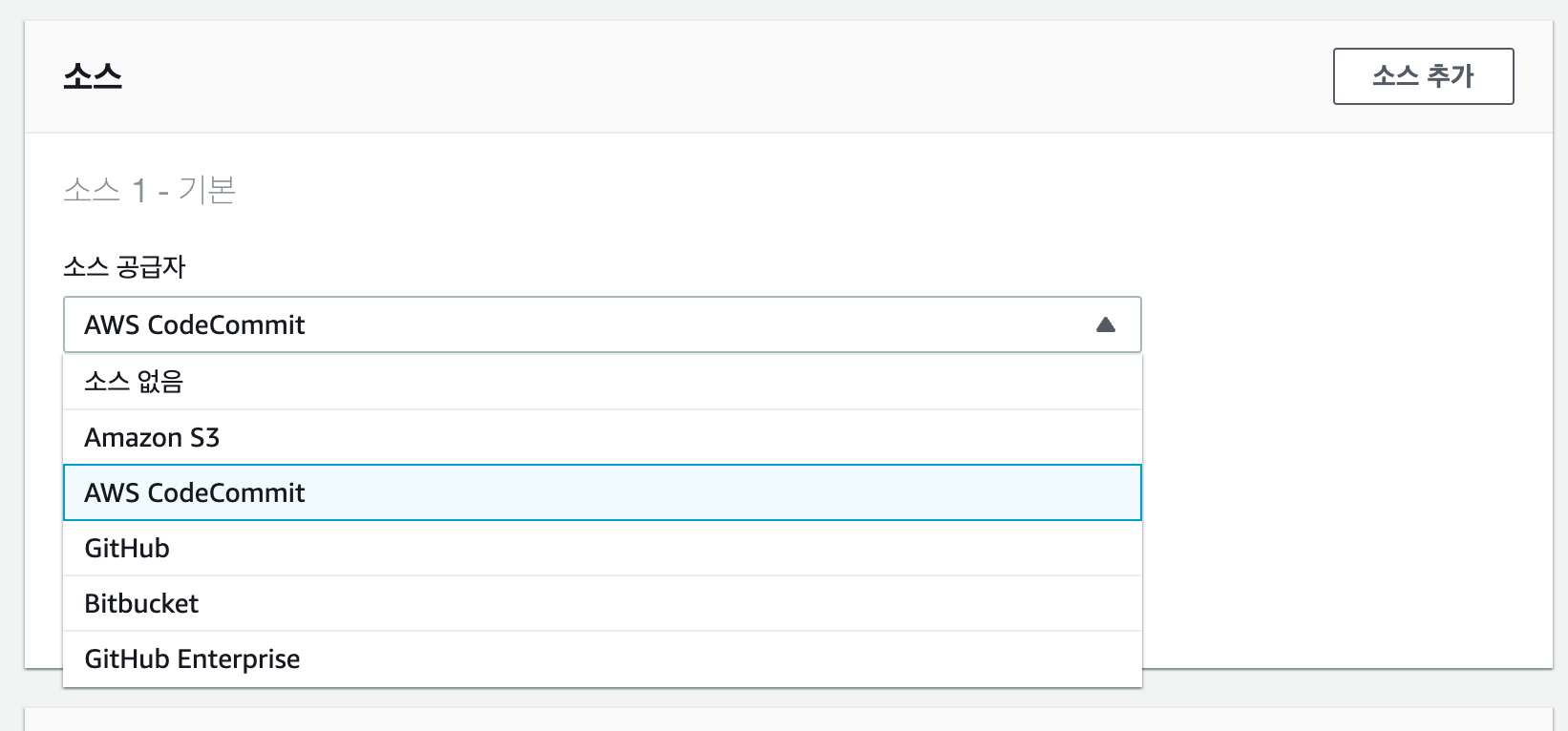 배포할 소스는 s3에 업로드된 zip파일, docker, ecr의 이미지, bitbucket, github, codecommit의 repository로 부터 가능하고
