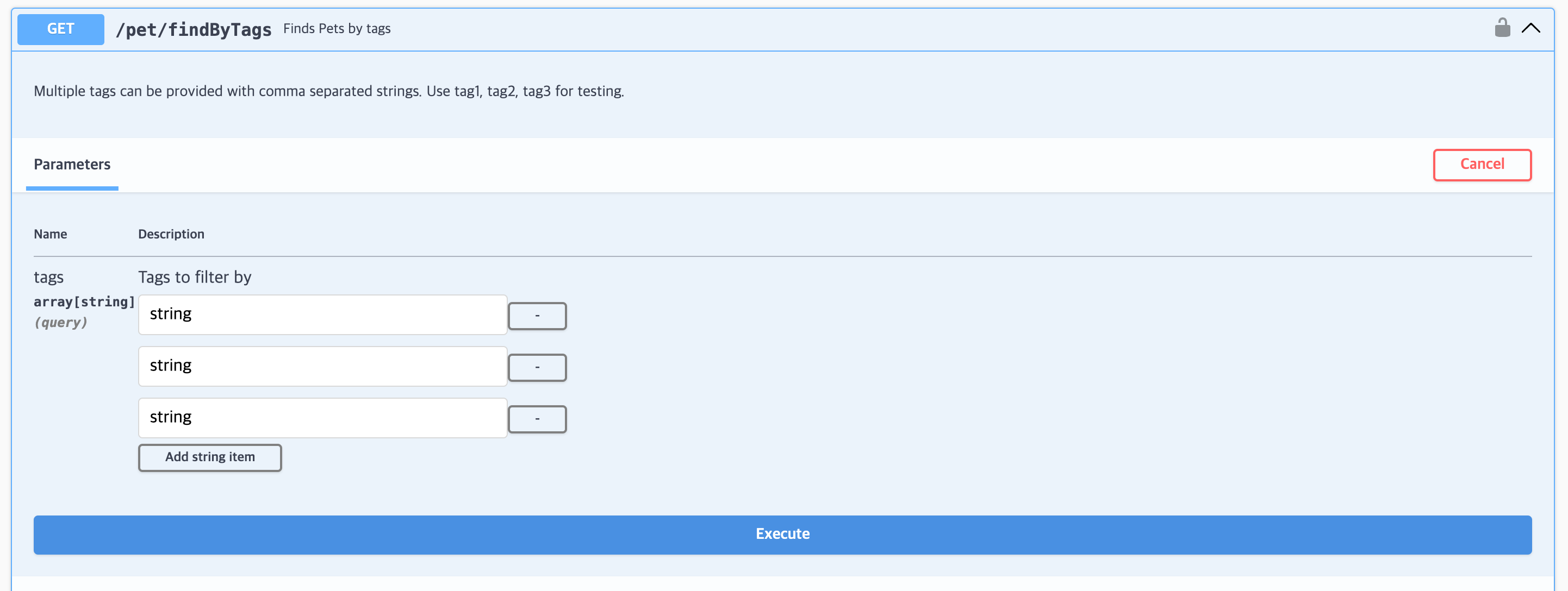 openapi에서는 1번의 경우 사용자가 하나의 input 안에 여러개의 입력값을 직접 구분자를 이용해 열거해야하는데